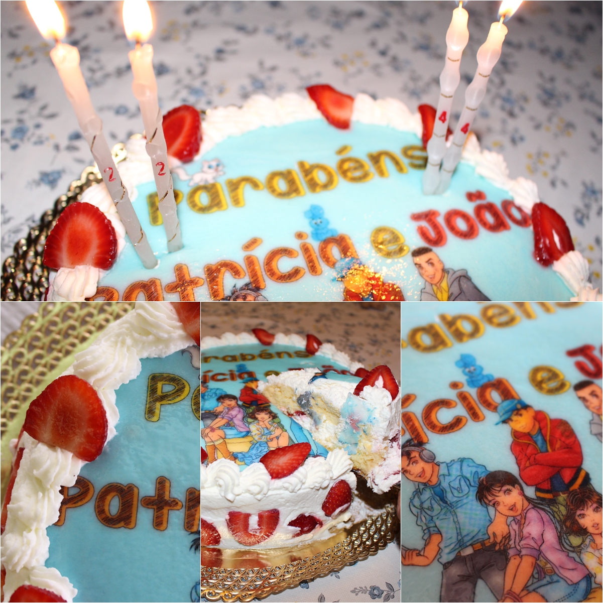 Adorei! O azul ficou muito bonito. A primeira imagem era semelhante, mas depois lembrei-me que também iamos cantar os parabéns ao meu pai que fez anos dois dias antes de mim. Pelo que tive que alterar para cantarmos no mesmo, já que não havia necessidade de fazer dois bolos.